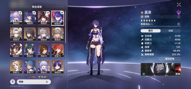 目前只有白露加拉赫當奶媽 白露在黃泉就業但是打深淵常常不夠用... 該抽下次的藿藿復刻還是等新火豐饒呢 有流螢玩超擊破 黃泉好像也需要砂金護盾 https://i.imgur.com/6UgRFY6.jpeg
