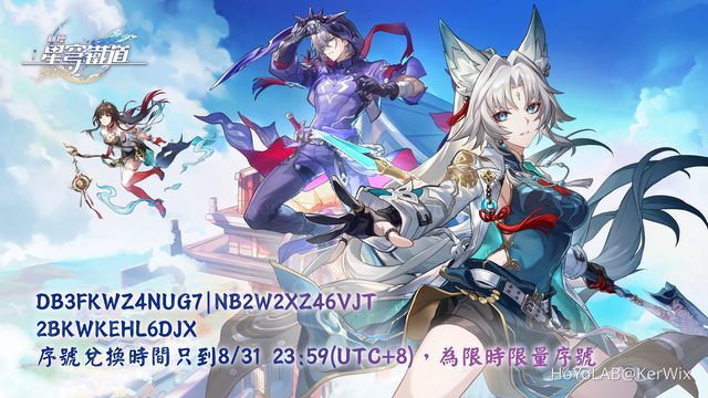 星瓊序號兌換時限到8/31 23:59(UTC+8),記得趕快換喔~~