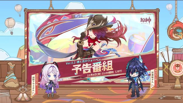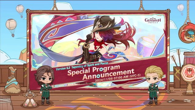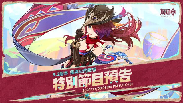 親愛的旅行者,現在是派蒙的特別節目預告時間> < 《原神》5.2版本「靈與火的織卷」前瞻特別節目將於11月8日(本週五)20:00正式開啟。 http://i.imgur.com/fBzjWLw.jpg