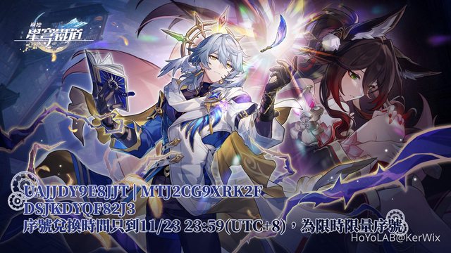 星瓊序號兌換時限到11/23 23:59(UTC+8),記得趕快換喔~~