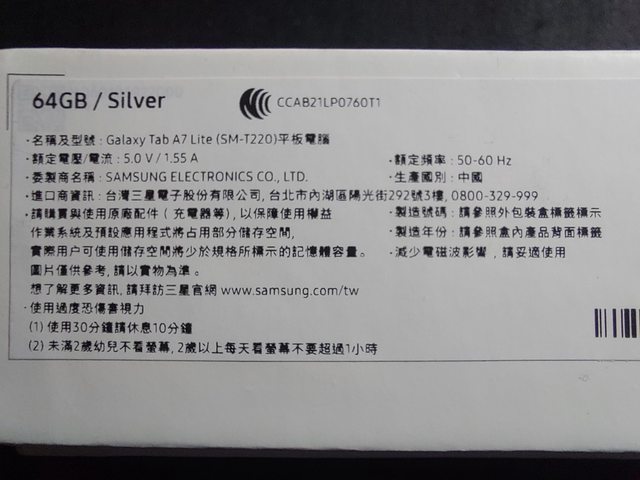 欲售物品:三星 Galaxy Tab A7 Lite (SM-T220) 4G/64G WIFI 銀色