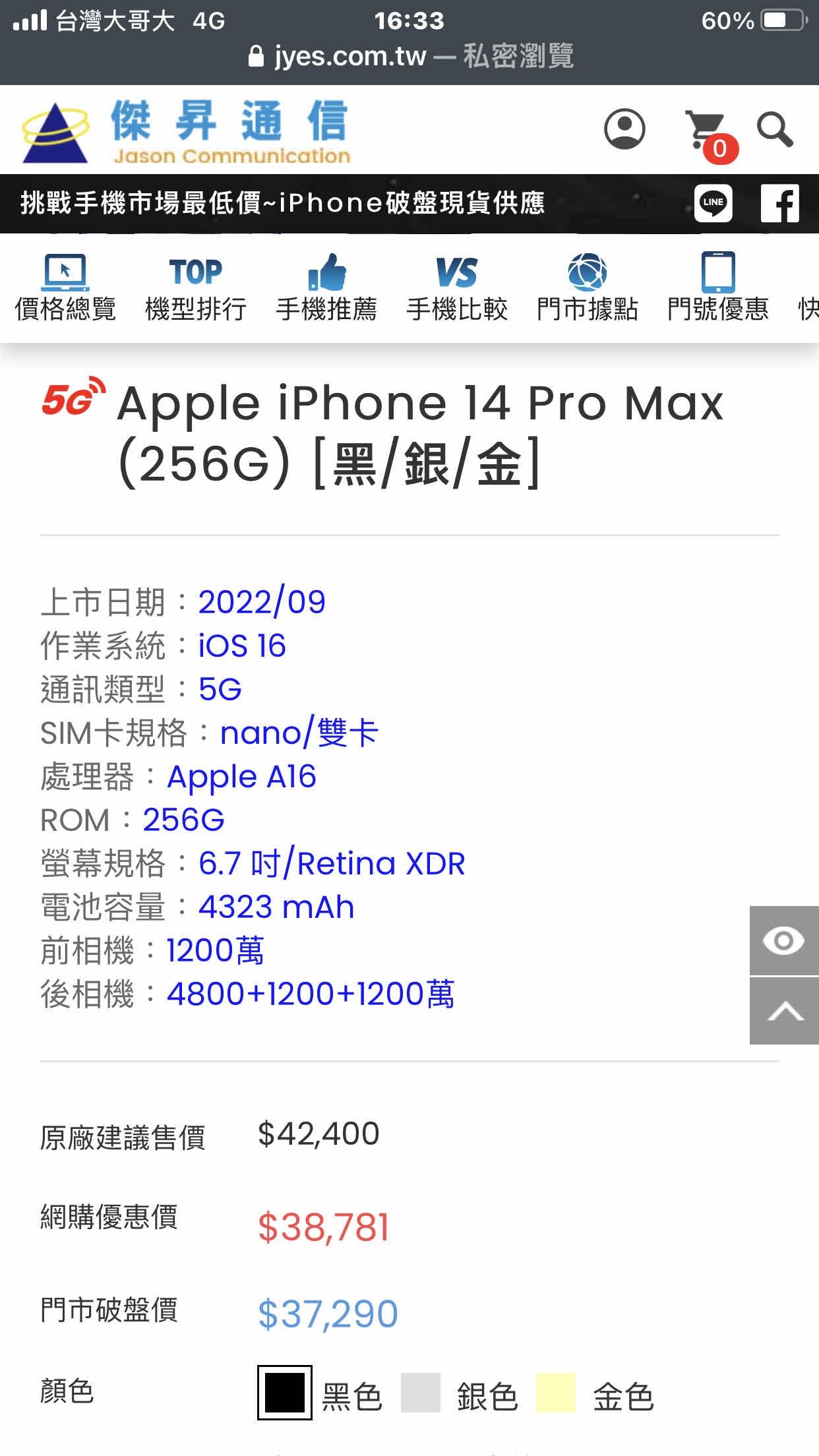 標題[賣/台中/面交] iphone 14 pro max 256g 黑色