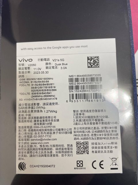 欲售物品:VIVO V21s 5G 8G/128G dusk blue