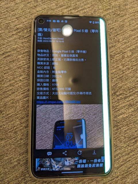 標題[賣/雙北/皆可] Google Pixel 5 綠(零件機)