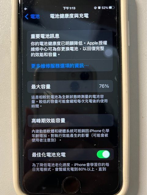 過程沒有送修過,物品外觀請見原圖,有固定使用螢幕保護貼跟保護殼,電池健康度76%