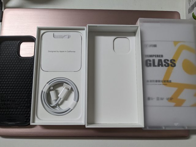 盒裝內含:原廠盒子、原廠充電線(未使用) 退卡針、一片未使用保護貼(含貼膜器)、兩