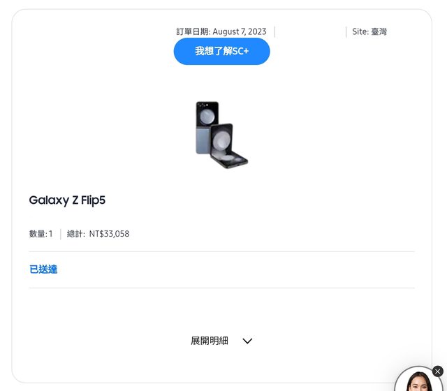 欲售物品:Galaxy Z Flip5 256GB 冰海藍 (商城限定色)