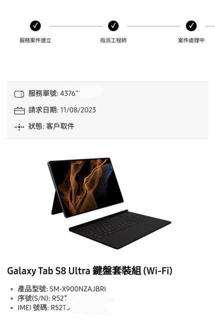 欲售物品:(已售出)Samsung Tab S8 Ultra 鍵盤套組 保固內