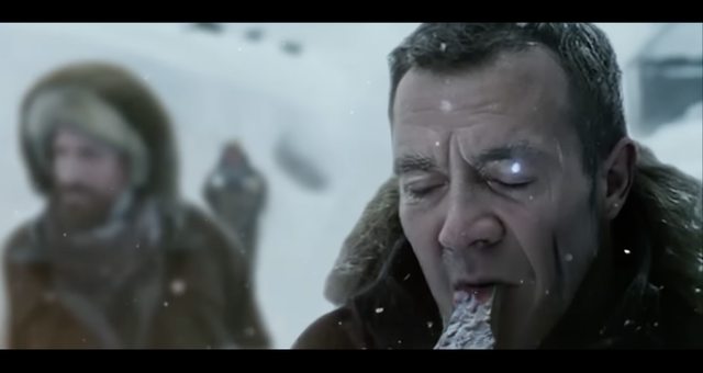 從影片中可以看到,雖然畫面中的人物大多是靜態的,但因為是在冰河氣候中,人物還是