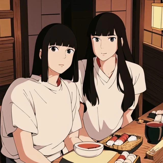 照片,妞編輯嘗試導入了自己和朋友的雙人合照,沒想到竟然意外的神似《神隱少女》裡