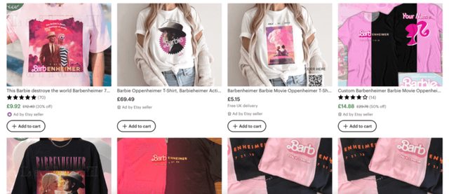 「芭比海默」除了在推特上大肆流傳之外,更帶來了實際的商機:有不少人開始製作《芭
