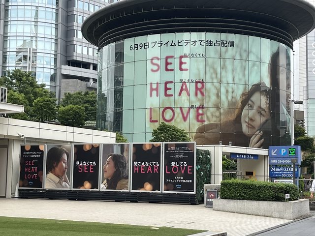 東京「六本木之丘」的「Metro Hat」外側弧形玻璃幕牆,都出現巨幅《看不見聽不見也