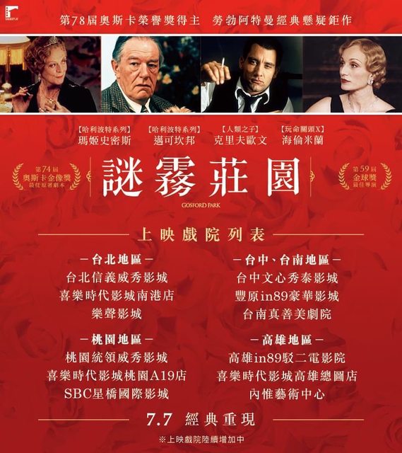 標題[情報] 《謎霧莊園》上映戲院列表公開