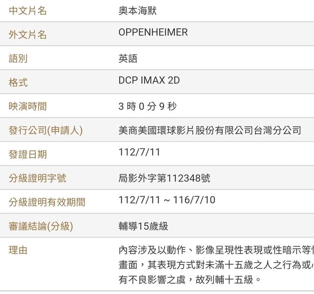 iqeqicq : 文化部公告的算正片長度吧? 07/12 00:37