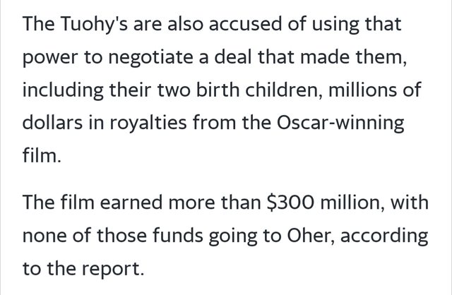 推 GenYDad : Oher說他是2023年2月才發現他18歲時被騙簽約被監管 08/15 10:27