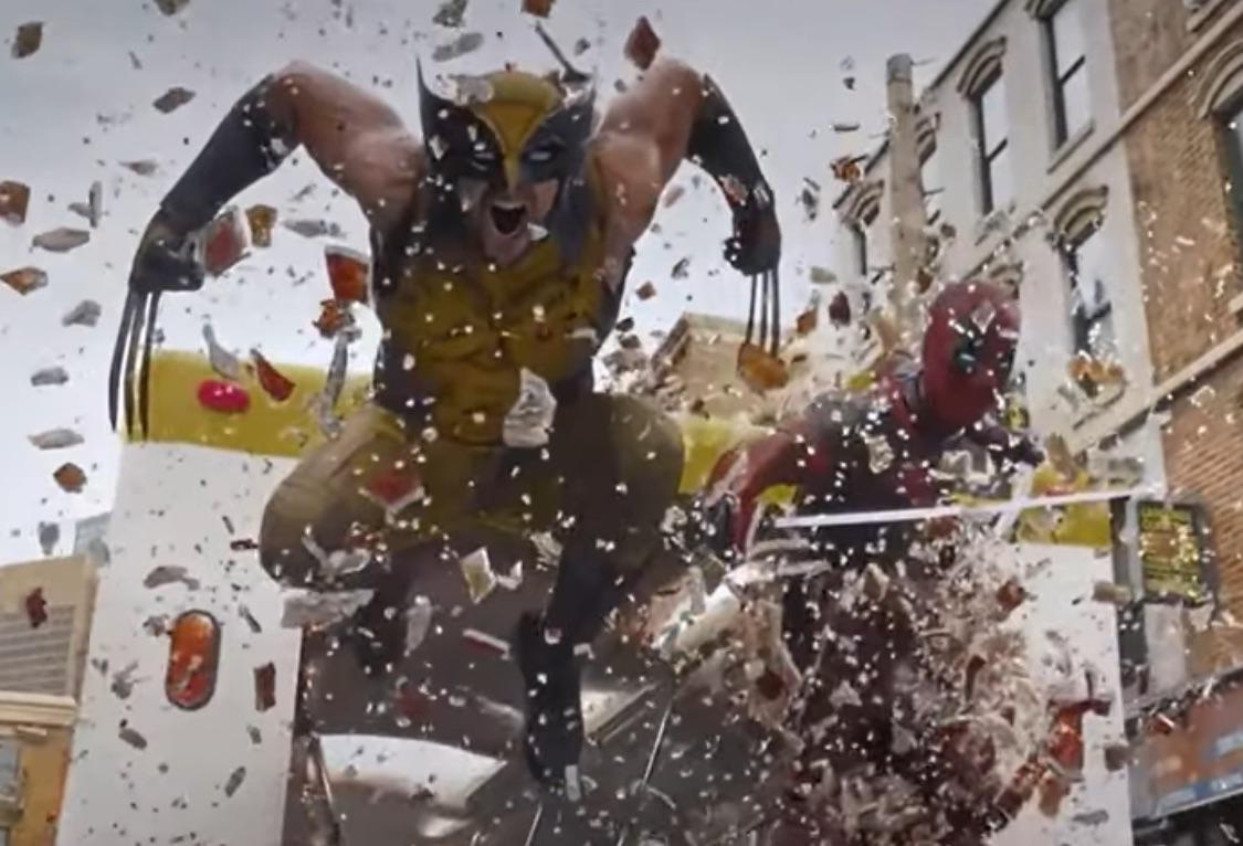 最後對決的場景,死侍跟金鋼狼從公車破窗而出的時候
