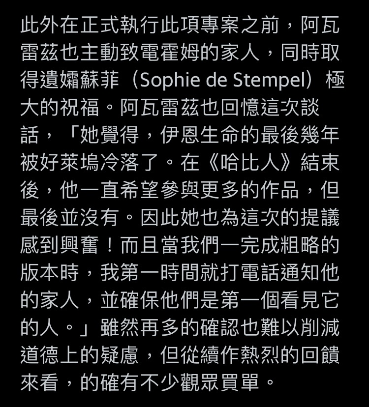 這其實是不尊重死者,那請問這部作品到底要不要算伊恩霍姆的演出作品??