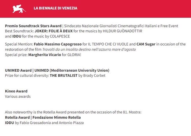 2024 第 81 屆 威尼斯影展奪下