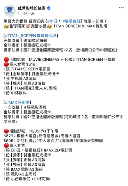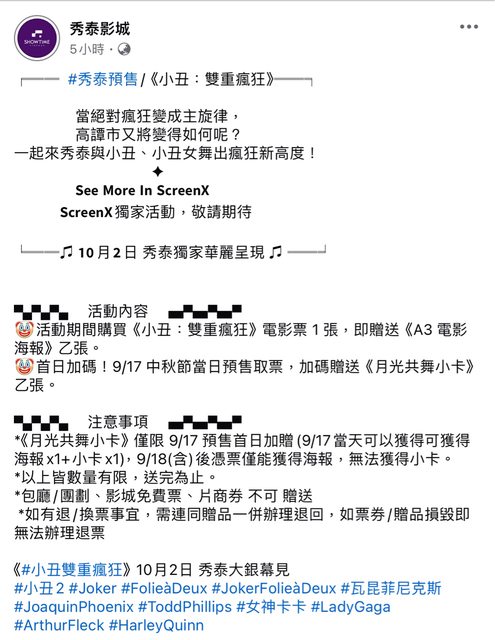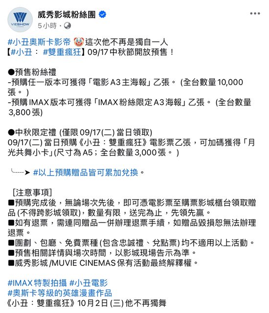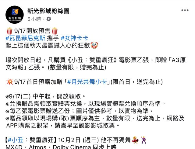 標題[情報] 《小丑:雙重瘋狂》9/17預售票 全國開賣!