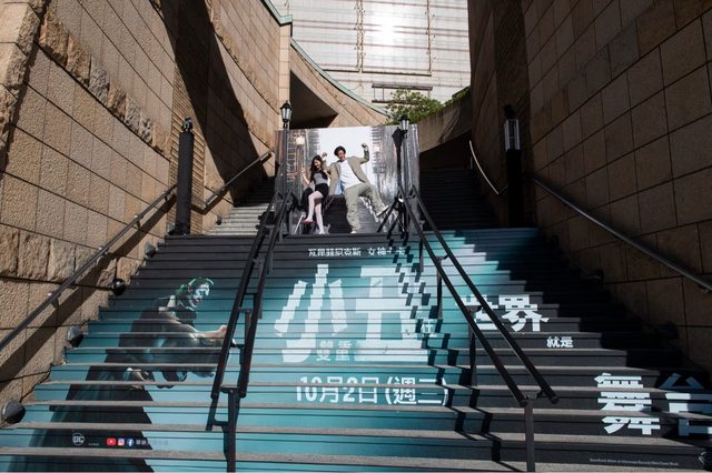 吸引不少民眾駐足拍照,重現小丑在階梯上跳舞的經典畫面,並同時宣布《小丑:雙重瘋