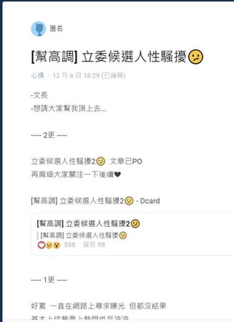 在此同時林世偉卻也被指控在今年10月間前往台東拜票時,對工讀生性騷擾。