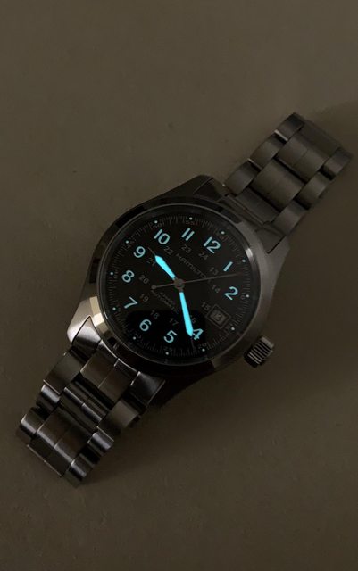 商品名稱:Hamilton khaki field auto 卡其野戰 商品型號:H70455133 欲售金額:12000 購買日期:2023 隨附物件:盒單齊全 所在地點:台北市 聯絡方式:站內信 錶徑38mm,80小時動力儲存H-10機芯 100米防水,底蓋背透 鋼錶帶貼手舒適 黑色面盤,讀時方便的數字時標 整體錶況很好,少有使用痕跡