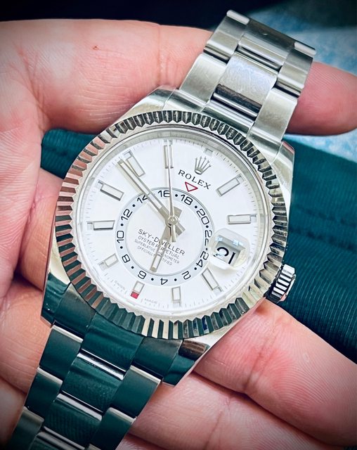 商品名稱:Rolex Sky Dweller 型號:326934白面天行者三版帶 保卡年份:2019 來源:台中永生珠寶中心 配件狀況:盒單全/永生購買證明 錶徑:42mm 售價:NT495000 聯絡方式 :站內信或加Line詳談 https://i.imgur.com/mlq1qNj.jpg
