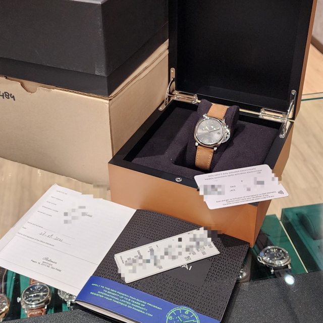 【配件】:沛納海大三錶盒,保證卡,條碼貼紙,說明書,新款快拆式原廠皮錶帶 在。