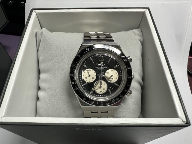 手錶型號:Q Timex復刻系列三眼石英計時錶 黑/銀 TXTW2V42600
