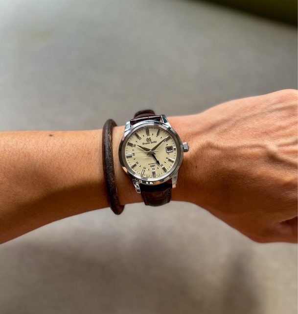 日正裝搭配,這隻外觀有日常使用痕跡,約9成新,日差約5秒,配件齊全缺紙本保卡,售