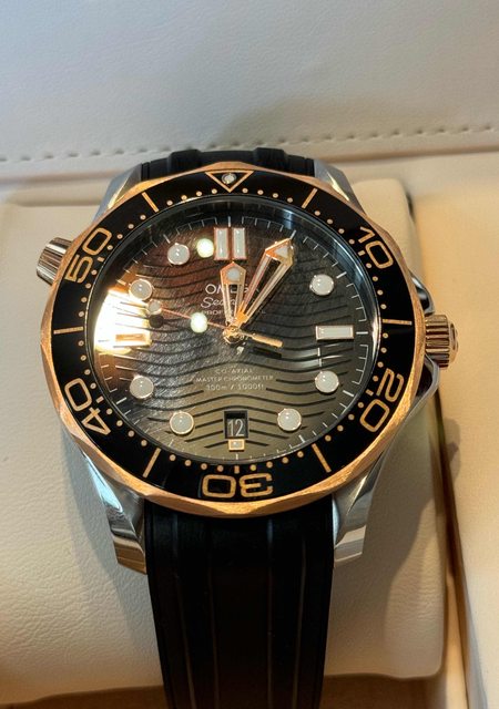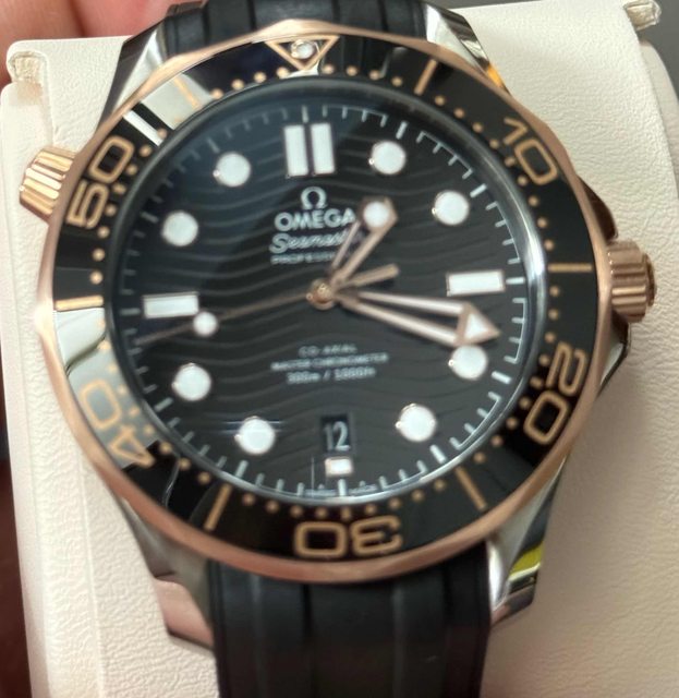 標題[賣錶] 售 Omega玫瑰金膠帶黑海馬