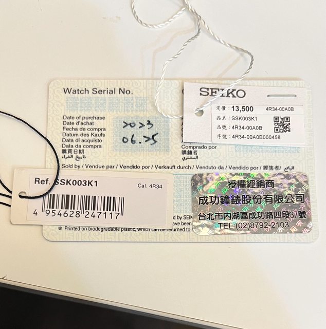 手錶型號: 4R34-00A0B/SSK003K1