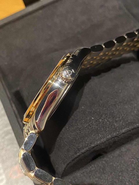 商品:Ogival愛其華金字塔紋白面18k半金蠔式機械錶