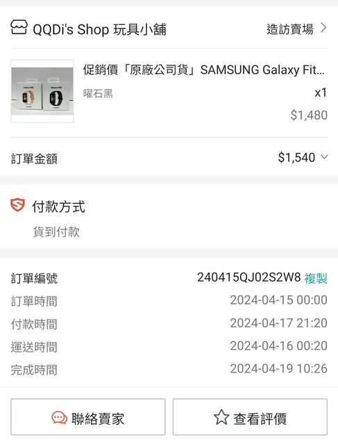 手錶型號:Galaxy galaxy Fit3 黑