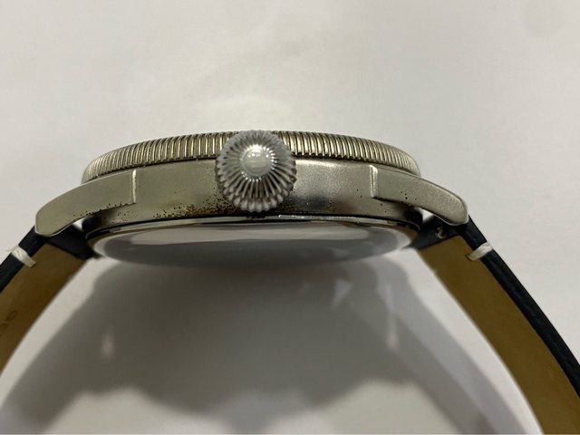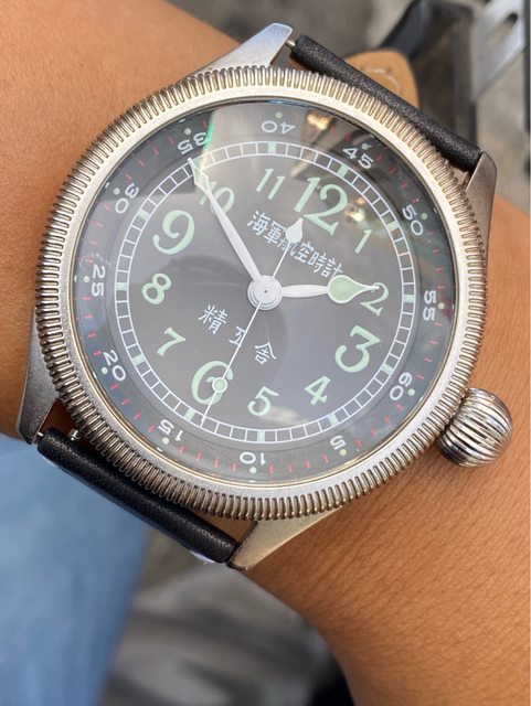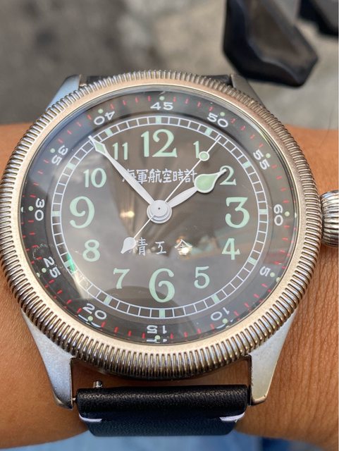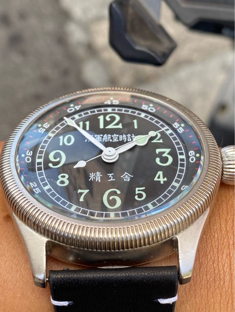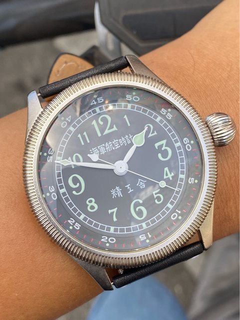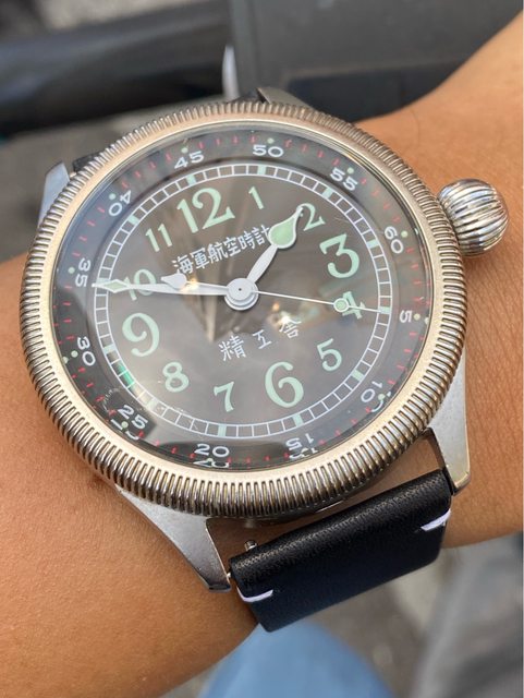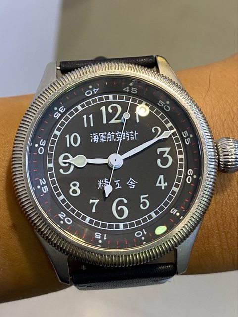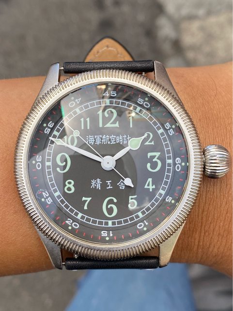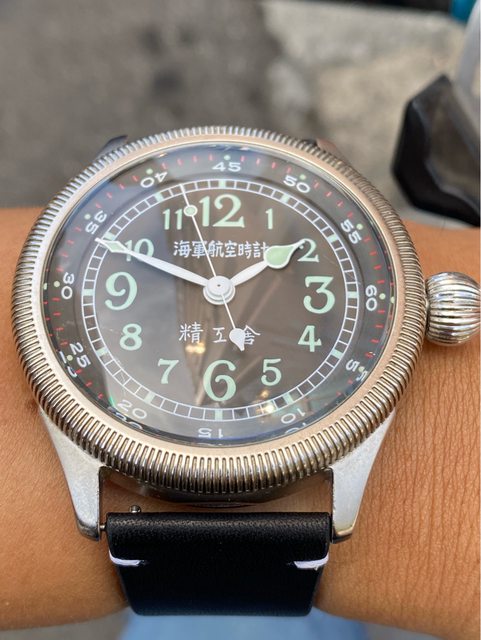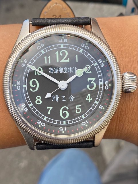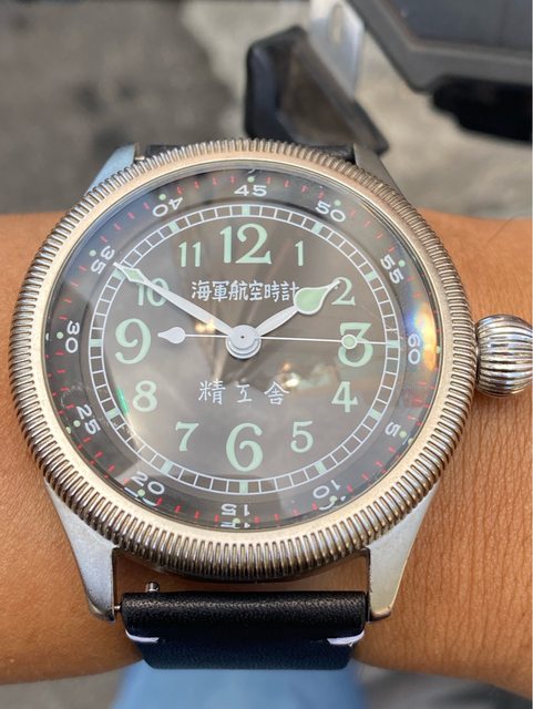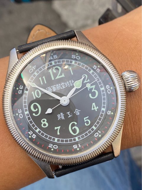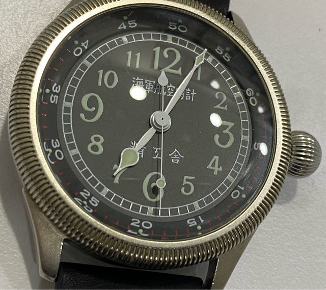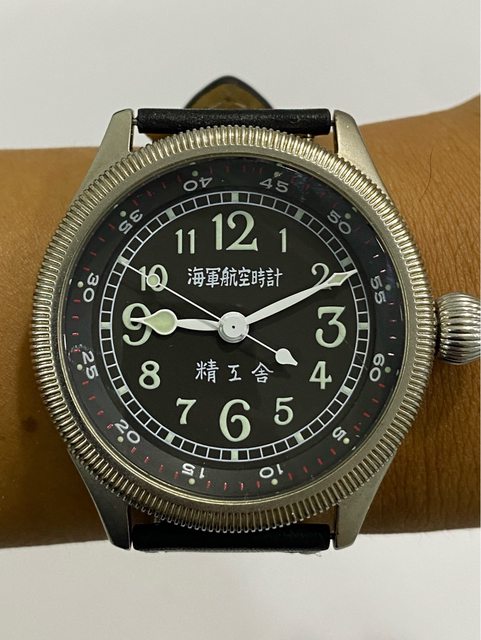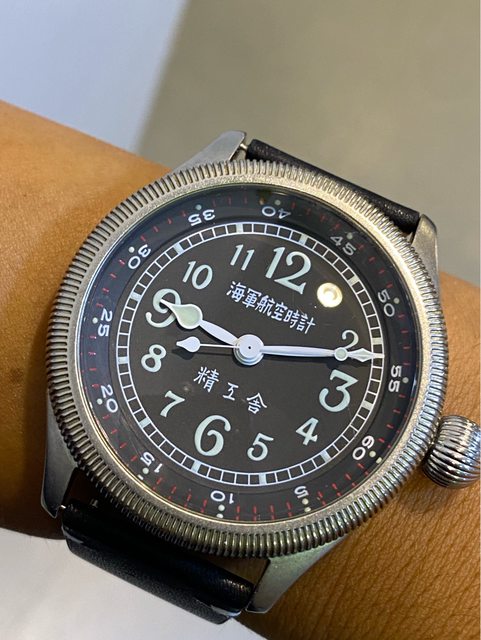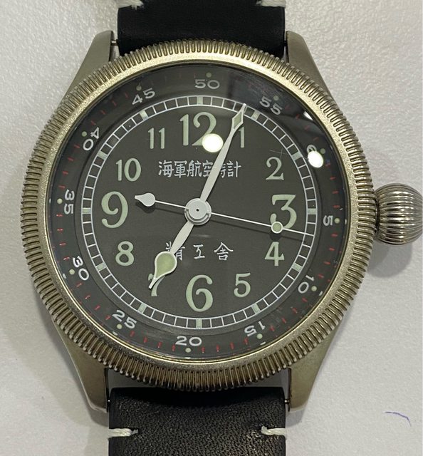 【商品名稱】海軍航空時計 (復刻版)精工舎 【商品價格】8660元(含店到店 【附件】單錶一顆 ————————————————— 原廠錶帶已崩解,更換替代的錶帶, 走時正常,日常配戴非常吸眼球 由日本元海軍大尉柴田英夫監修與精工鐘錶博物館合作,紀念終戰60周年所製作 二戰中日本飛行員所使用的手錶,看膩了歐美飛行錶款的錶友可以試試看大日本帝国海軍 的飛行錶 錶徑:約48mm 機芯:SEIKO CALIBER Y675(7s25) 錶殼:鍍銅黃銅 錶冠:洋蔥圈(可旋轉) 厚度:約12mm —————————————————- 匯款後店到店,無面交服務,無交流