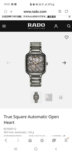品牌名稱:RADO True Square Automatic Open Heart