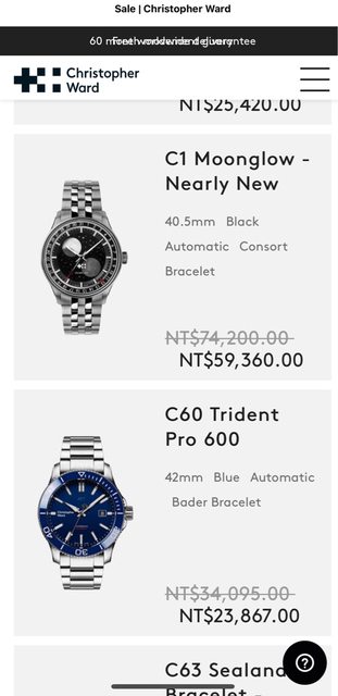 https://www.christopherward.com/sale 裡面蠻多錶整新品出清, 其中也有c1 moonglow月相 https://i.imgur.com/ol9PY1E.jpeg