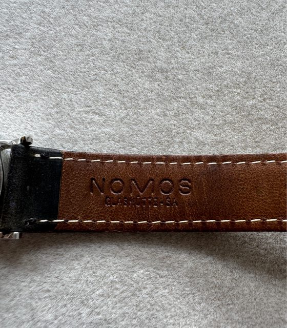 製成的藍鋼針,有畫龍點睛效果,這顆機芯是nomos前期的nomos 1 family機芯,金色磨
