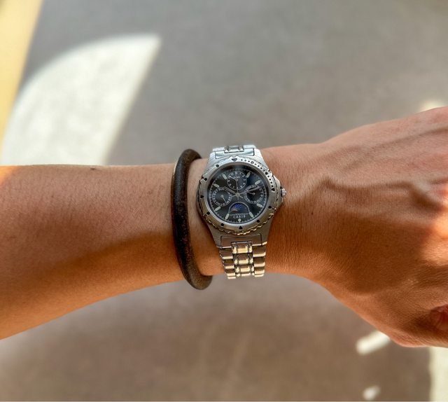 2.Seiko Alba 日期、星期月相顯示石英,錶徑約34mm,原廠鏈帶手圍最大約17.5cm,已