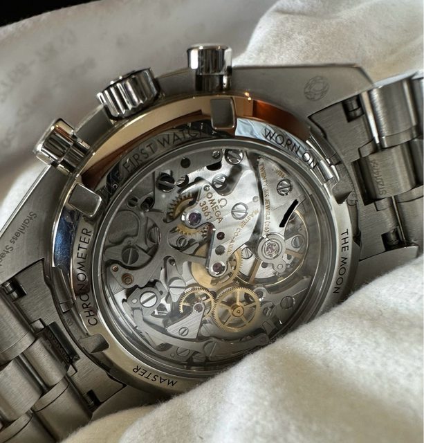 出售 Omega 登月透背款 3861 保卡: 202209 出處: 台灣AD 售價: 158,000 (已售出) 補充: 物品台中/彰化可面交,外縣市面交需另外約 錶有貼膜,正常使用痕跡 ,9成新,極少配戴 附一條加購的原廠摺疊扣皮帶(如新幾乎未用), 附上剩餘錶節,加贈一個全新米色攜行盒, 因要升級其他錶款故出售, 有考慮交流其他錶款: Defy / Santos / Glash槺te偏心系列 (以上幾款可來信討論) 今日拍照如下(現況照片):