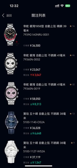 在社群上看價錢是最即時的,但有時候我會看"時研家"這個app,熱門錶才有參考價值
