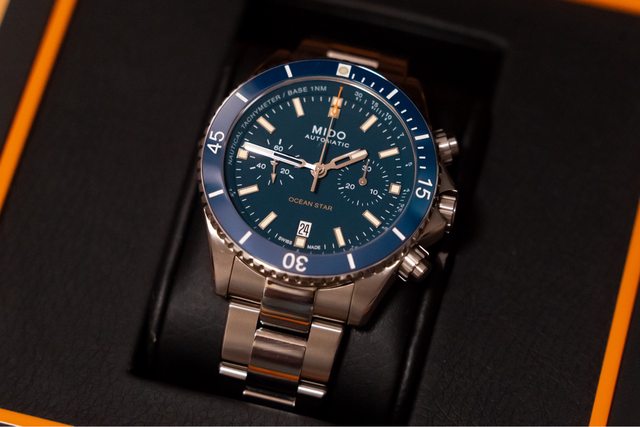 品牌型號:Mido ocean star Chronograph 藍 鈦金屬