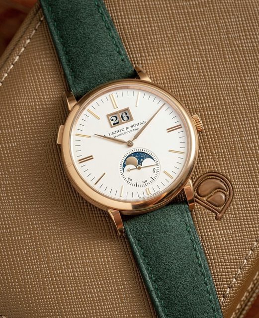 Delugs 綠色錶帶搭配Saxonia Moon Phase (384.032),這配色讓我無法拒絕,綠金真香。