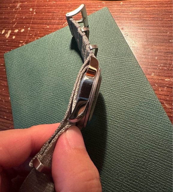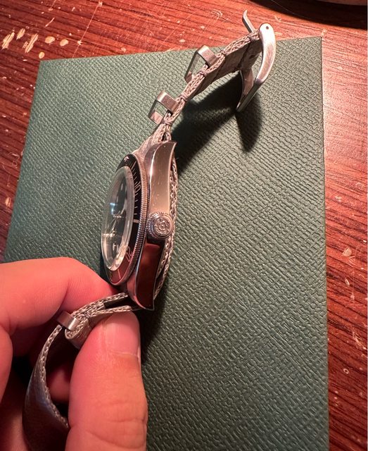 說明:日常配戴,無磕碰,有小細紋,背面兩道細紋其餘皆是毛絮,原廠鋼帶調錶節後不