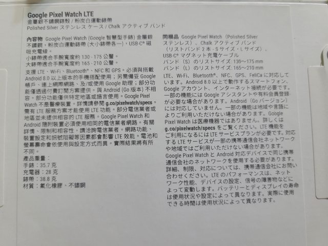 【手錶型號】Google Pixel Watch 1 LTE 版