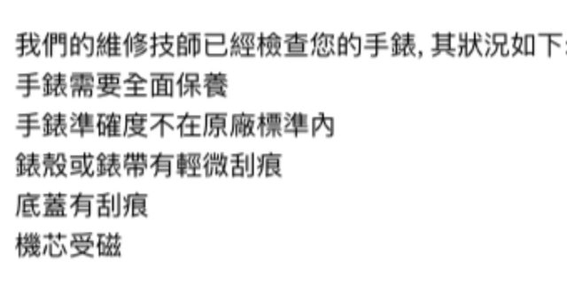 推 g10010010010: 部分保養也需提供保固 若只做部分但無法回覆腕錶初09/22 09:28