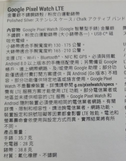 【手錶型號】Google Pixel Watch 1 LTE 版