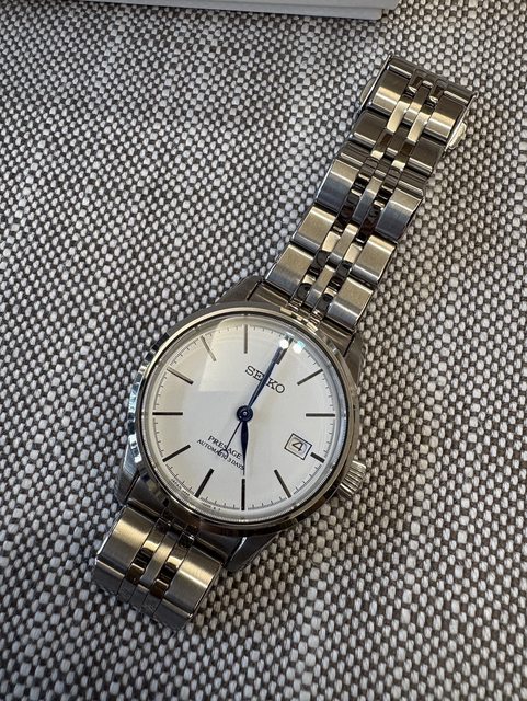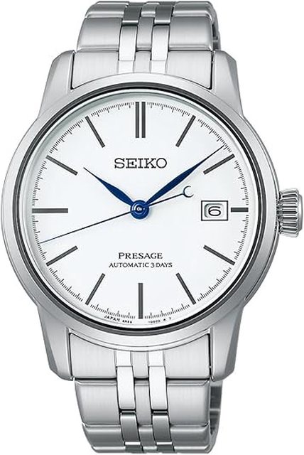 外觀:白色琺瑯盤 藍針 不鏽鋼錶帶